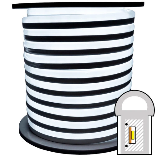 If you are tired of dealing with the hassle of traditional neon glass bulbs, then try out our SMD LED neon rope light spool. You will be amazed with our crisp and radiant SMD Cool White LED neon lights. One major benefit of using neon LED rope lights is their flexibility allows for you to easily create any design or application that you desire. Traditional neon glass lights consume 80% more power than the LED neon rope lights and can be a hassle to dispose of once they burn out. Brilliant Brand Cool White SMD LED neon rope lights have a lifetime rating of 50,000 or more hours. If you are needing lighting to create a sign or for your bar or restaurant, you will find that SMD LED neon rope lights will work for any application.