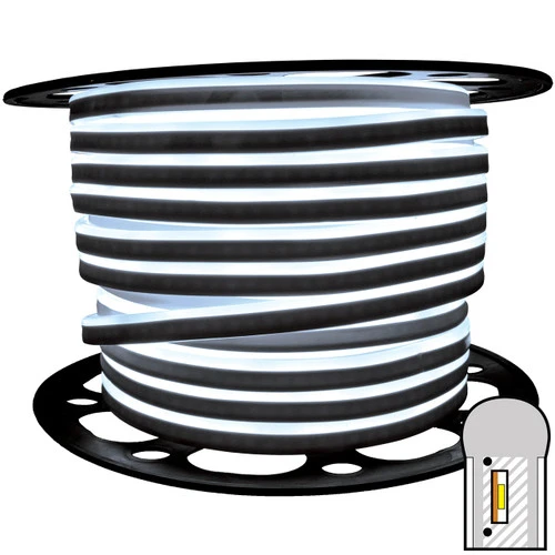 Looking for that crisp, bright, white light that will really stand out from the rest? Well you have found it in our Cool White neon LED strip lights. A great option for replacing traditional neon glass bulbs, our neon strip lights will stand out and save about 80% on power usage. There is no hassle customizing these lights to fit your design as they are extremely flexible and durable. Hang these lights outside your bar or restaurant and customers will rave over how amazing these lights look. With a lifespan of 50,000 hours, Cool White Neon LED Strip Lights are sure to bring wonder and awe to your next lighting project for a long time.