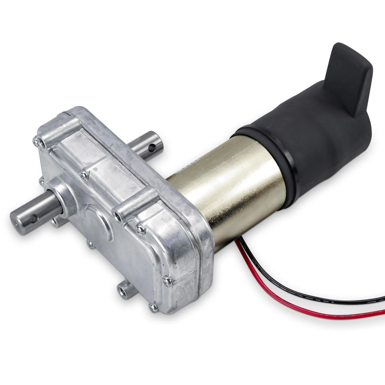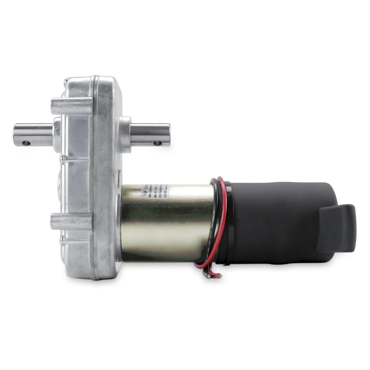 New, permanent magnet, parallel shaft gear-motor. Cast aluminum gear housing and motor end cap with steel motor frame. 12 VDC electro-mechanical brake on rear of motor with manual release lever. Â