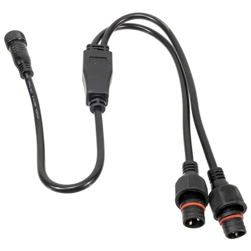The two-wire LED neon strip light Y-extension with pigtails allows you to connect and control 2 runs of LED neon strip lights using a single controller. Compatible with our LED neon strip light two-wire outdoor multi-function controller, each Y-extension is rated to be used indoors and outdoors. This LED neon strip light Y-extension comes with two pigtail connectors that are designed to be directly connected to the 2-wire 120v LED Neon Strip Lights only.