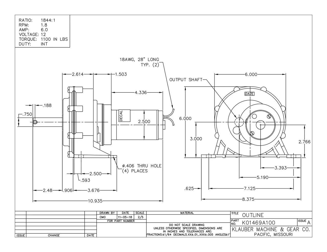 RV Slide Out Motor Klauber K01469A100 Slide Out Motor Replaces K01176B100 24806 &07, 74759
