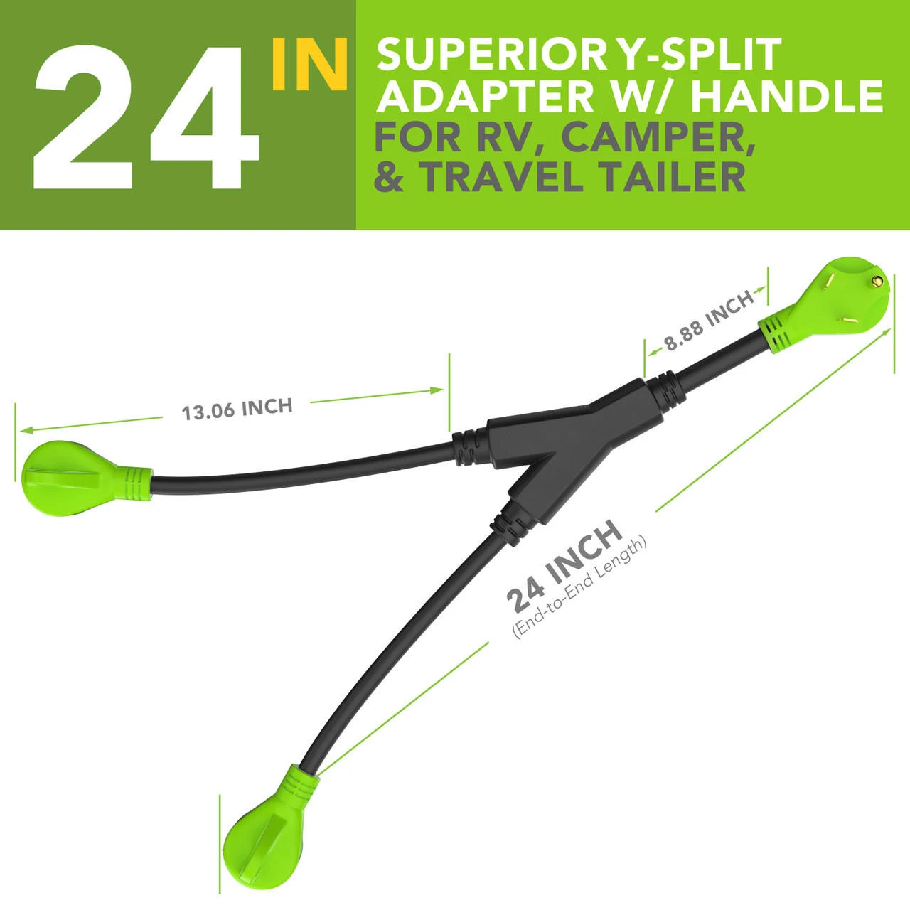 RV Y Adapter Cord 30 Amp Male Plug To Two 30 Amp Female 24″ With Handle